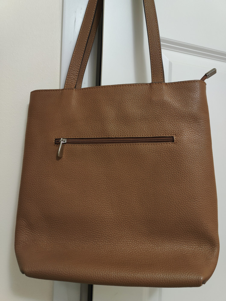 Сумка очень понравилась, средняя, то что нужно для походов на работу! Входит и зонт, и косметичка и вкусняшки к обеду! Кожа приятная тактильно, очень плотная и приятно пахнет! Много кармашков для мелочи! Форму держит.