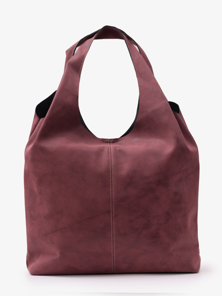 Сумка шопер, сумка мешок. Очень красивый цвет, средне между светлым баклажаном и бордо. Кожзам, но по виду кажется, что это замша. Мягкая, лёгкая, интересно закреплена косметичка внутри,я бы сказала,что это большой внутренний карман. Интересная модель и подойдёт по цвету по многим вещам